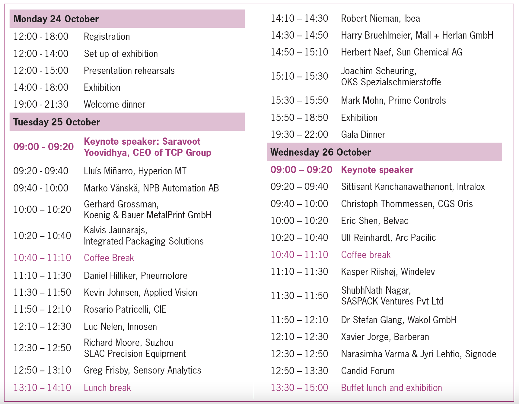 The conference is structured over three all-inclusive days (24-26 October), with registration, set up and rehearsals, exhibition and welcome dinner taking place on the 24 October. Day two kicks off with keynote speaker, Saravoot Yoovidhya, CEO of TCP Group, followed by a series of further presentations and an exhibition. The day concludes with the Gala Dinner, during which the Asia CanTech Awards ceremony will take place, celebrating the excellence of can and end makers that are based in or distibute their products in Asia. The third and final day completes the event with presentations and the Candid Forum, followed by the last exhibition and a buffet lunch, to allow for further networking opportunities with industry experts and stakeholders. Entrance to all keynote presentations, exhibitions and the Candid Forum, alongside the conference pack with a list of all attendees, is included in the package for this year’s event.