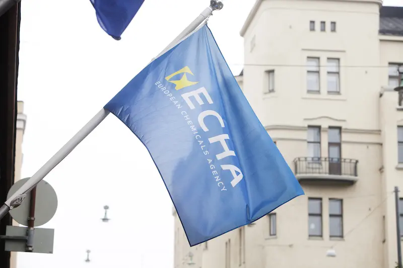 European Chemicals Agency (ECHA) flag at its Helsinki headquarters. Image: European Commission – Atte Kajova