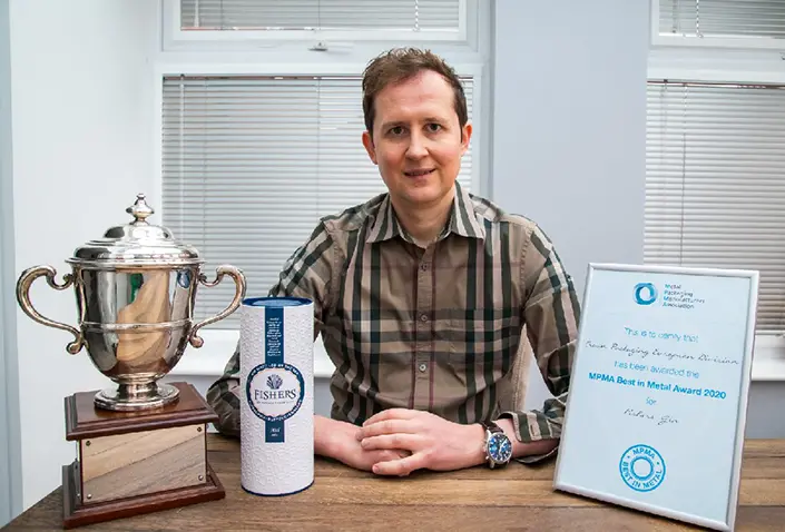 Robert Fell, MPMA Director and Chief Executive, commented: “This is a truly trailblazing pack which has swept the awards this season. Although alcoholic drinks are regularly found in metal secondary packs, gin brands are less usual and Fishers Gin is among the first to realise the creative and premium finish that metal presents.