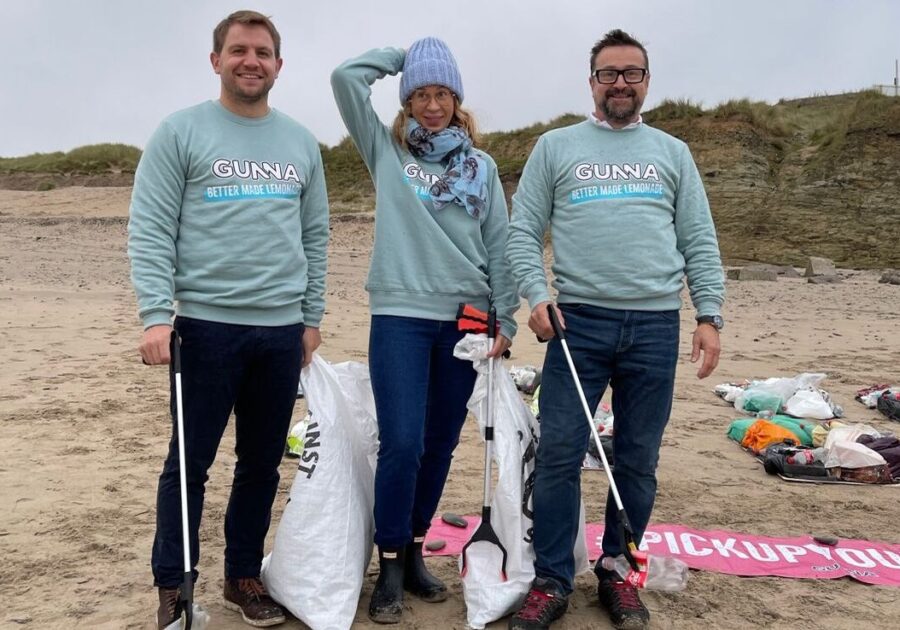 In support of their efforts to lobby the government in banning plastics in the soft drinks sector, the craft lemonade team behind Gunna headed to Cornwall to complete a beach clean at Gwithian Beach, Hayle.