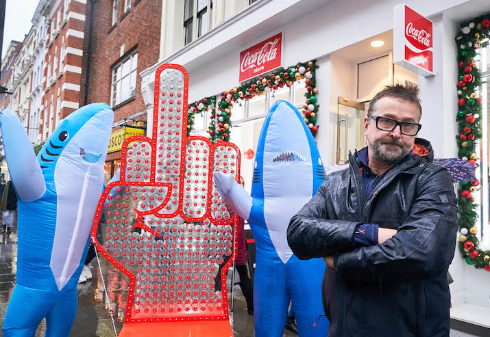Craft lemonade brand, Gunna Drinks, has delivered a middle finger sculpture made of plastic cola bottles to Coca Cola with the message “Pick Up Your Crap” for Christmas.