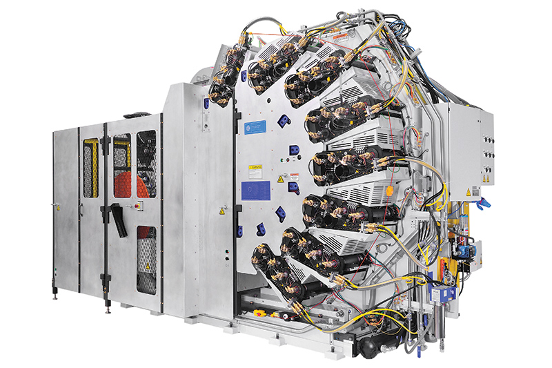 Today’s Concords feature 8 inkers and are available with either 24 or 36 mandrels with rotary trip. A 36-mandrel machine can print up to 2,200 cans per minute – this is more than 36 cans per second – with up to 8 colours in tight registration, and applies a coat of clear protective varnish applied over the printed cans. Concords are ruggedly constructed to withstand the rigors of 24/7 high speed production, and are so well designed that over 98% of all the machines ever built are still in operation. Stolle is continuously improving the Concord, most recently with their exciting new Smart Decorator Technology. To date that includes Inkjector automated ink fountains and Remote Registration, a system that allows the plate cylinders to be registered from the HMI control screen rather than manually on the machine.