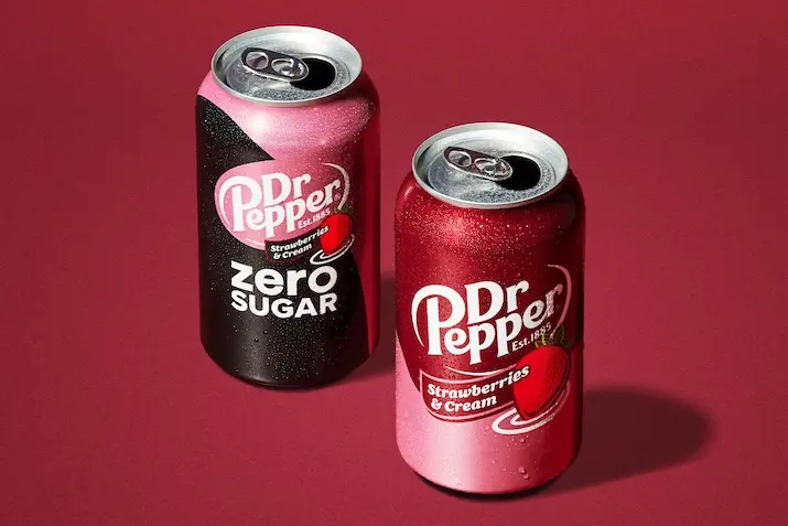 Dr Pepper Strawberries & Cream Regular will be offered in 12oz 12 packs of cans and 20oz bottles, and Dr Pepper Strawberries & Cream Zero Sugar will be offered in 12oz 12 packs.