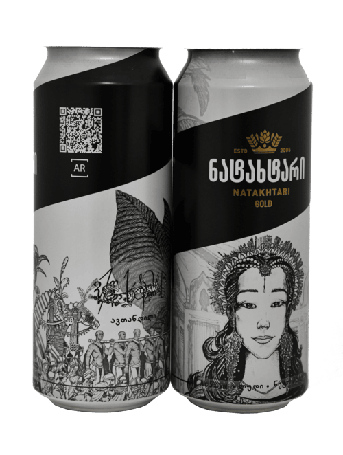 Crown: Natakhtari gold beer cans for Natakhtari Brewery