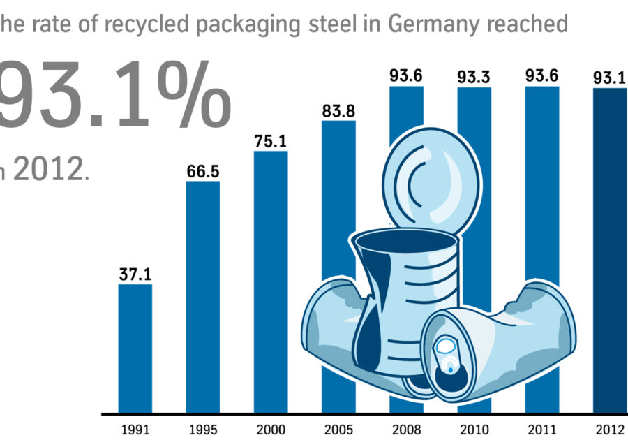 At the same time, after a temporary decline in the quantity of steel packaging sold, steel packaging purchases increased by approximately 2% to 501,500 tonnes. At 95.6%, the recycling rate for tinplate packaging from household consumption is higher than the overall rate and proves the great efficiency of household disposal systems.