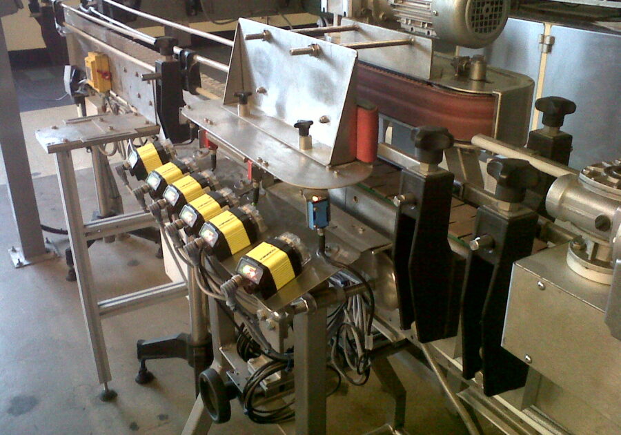 The production line runs at 97 cans per minute and in order to read the picket fence 1-D barcode round the can each unit has to be rotated. To cope with the convex structure and reflective surface, six DataMan 302X readers are placed in a row along the can turner. As the can is rotated through 360 degrees, each reader is triggered in three batches of two. This process results in at least two of the readers being able to read the code on each can.